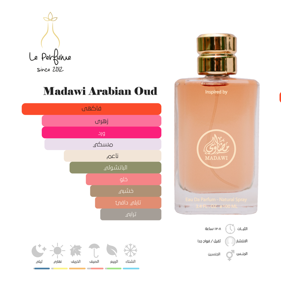 اكتشفي جمال اللحظة مع عطر مضاوي امنحي نفسك رفاهية الأناقة والثقة التي تستحقيها. اغمري نفسك برائحة فريدة تأسر الحواس، وإستمتعي برحلة استثنائية من الجمال والتألق. كني الأفضل، كني متميزة ومرئية مع عطر مضاوي الأفتتاح : الخوخ - زهرة التفاح قلب العطر : الأناناس - بلوسام المكونات الأساسية : المسك - الورد البري - الباتشولي الثبات : من ٥ ل ٨ ساعات الانتشار : فواح / ناعم فصول العطر : الشتاء / الربيع / الصيف / الخريف وقت استخدام العطر : الصباح / المساء الجنس : نسائي ويفضلة الرجال أيضاً الحجم : 100 مل